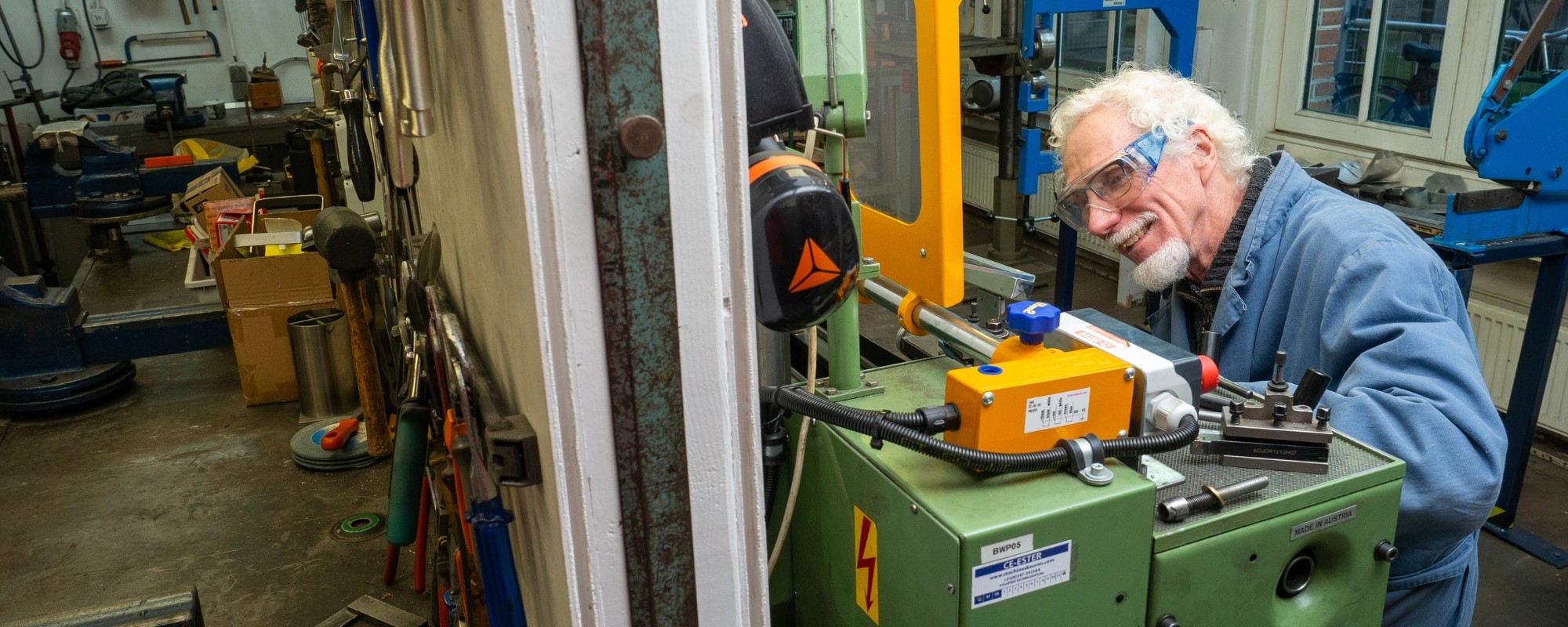 Veiligheidsschoenen en een lange broek zijn verplicht in de werkplaats. Heb je zelf geen veiligheidsschoenen? Bij de balie kun je een paar lenen. In deze werkplaats is veiligheid extra belangrijk omdat hier met machines wordt gewerkt. Op iedere machine is een veiligheidsinstructie te vinden. Bij twijfel, vraag het altijd aan de vakvrijwilliger.